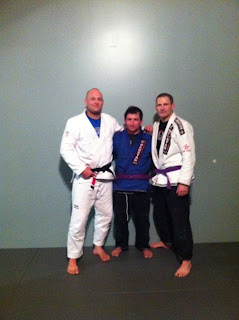 Chad Roberts took his evaluation on Friday night and received his purple belt from Brian Bird. He showed a lot of heart and demonstrated some great technique, including the hard to master “twenty-four inch hurl”.